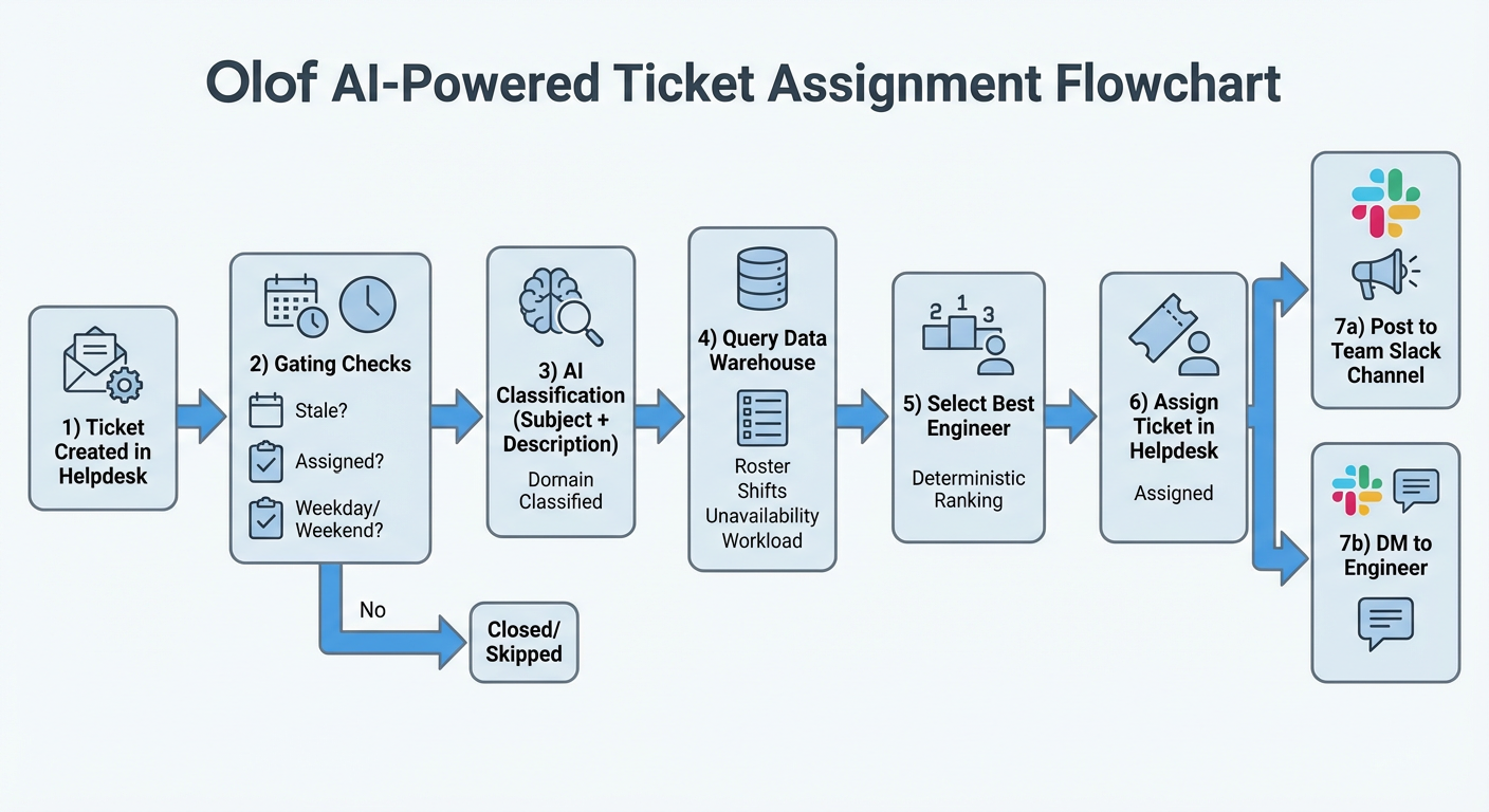 Olof is our AI-native automation system that owns Zendesk ticket assignment end-to-end: